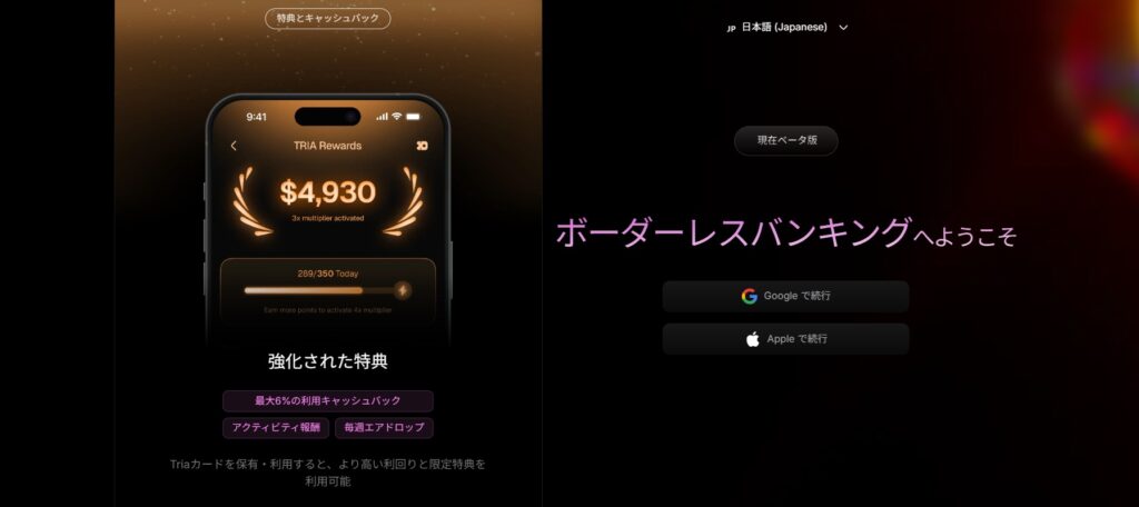 Tria Payは、仮想通貨と法定通貨のスムーズなやり取りができるネオバンクです。